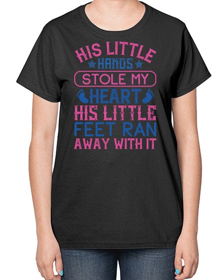 His little hands stole my heart His little feet ran away with it Style 335# - baby- Ladies T-Shirt