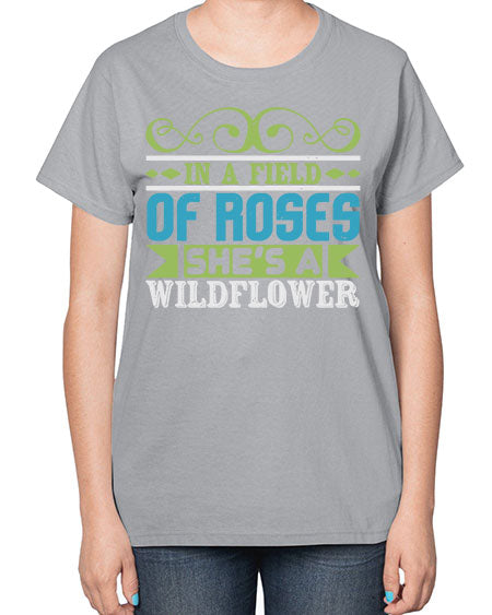 Ina field of Roses shes a wildflower Style 124# - baby- Ladies T-Shirt