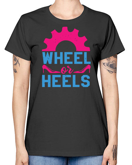 Wheel or Heels Style 238# - baby shower- Ladies T-Shirt