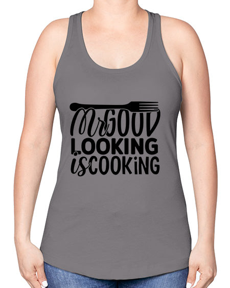 mr good looking is cooking 1406# - bbq -Racerback Tank