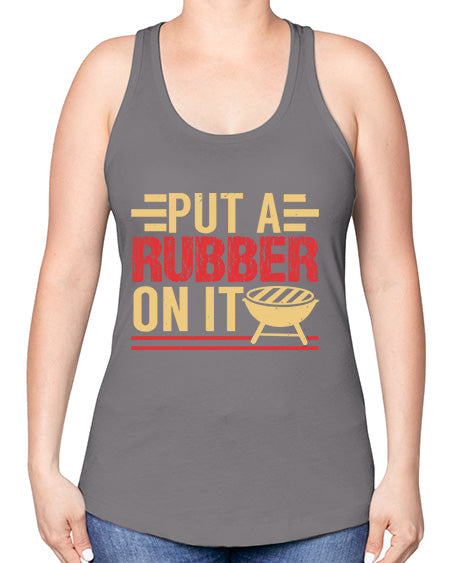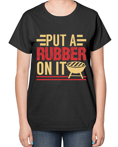 put a rubber on it 372# - bbq- Ladies T-Shirt