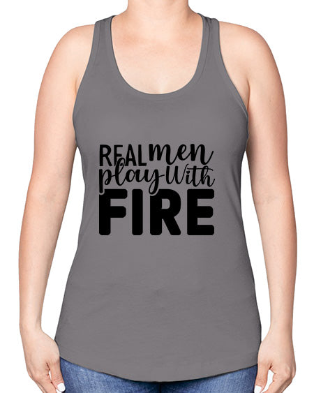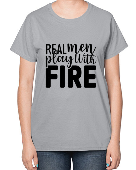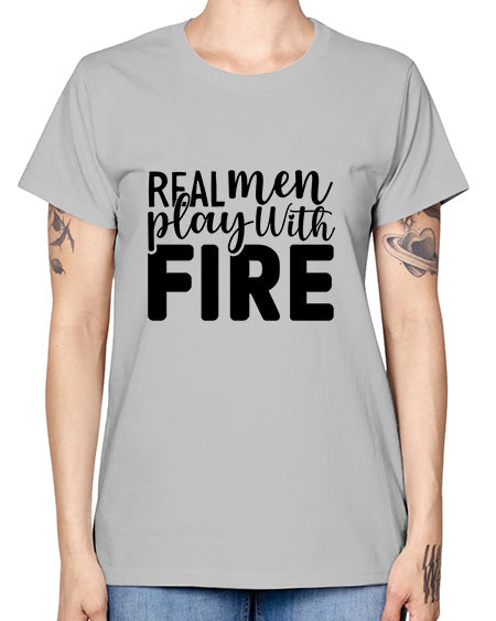 real men playing with fire 1498# - bbq- Ladies T-Shirt