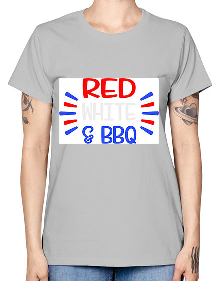 Red White BBQ 1499# - bbq- Ladies T-Shirt