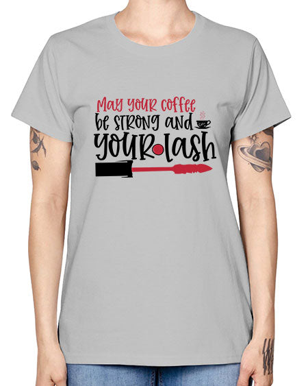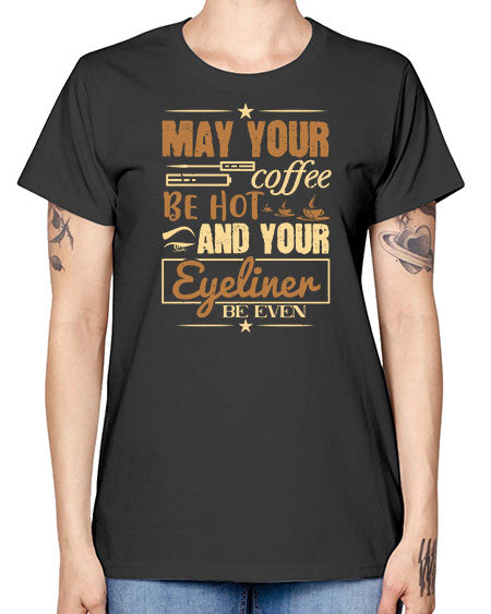 May your coffee be hot and your eyeliner be even Style 190# -makeup Ladies T-Shirt