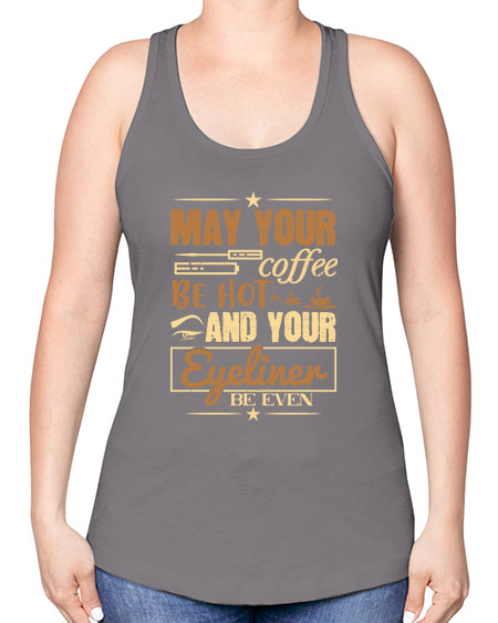 May your coffee be hot and your eyeliner be even Style 190# - beauty - fashion -Racerback Tank