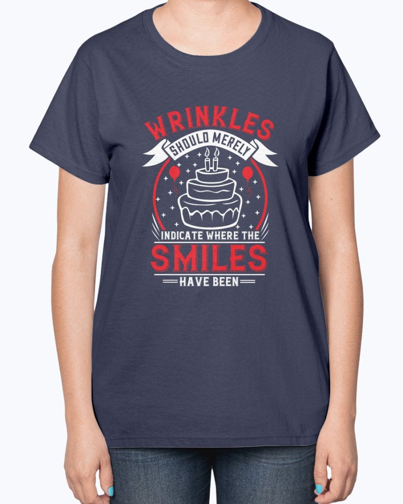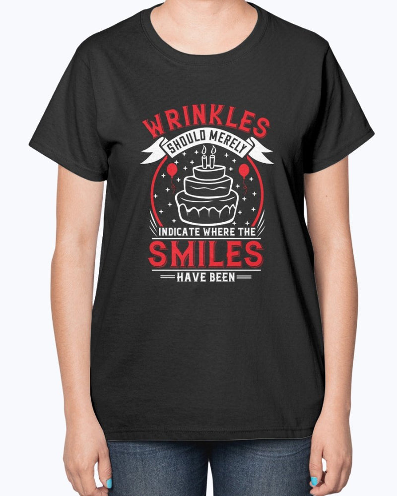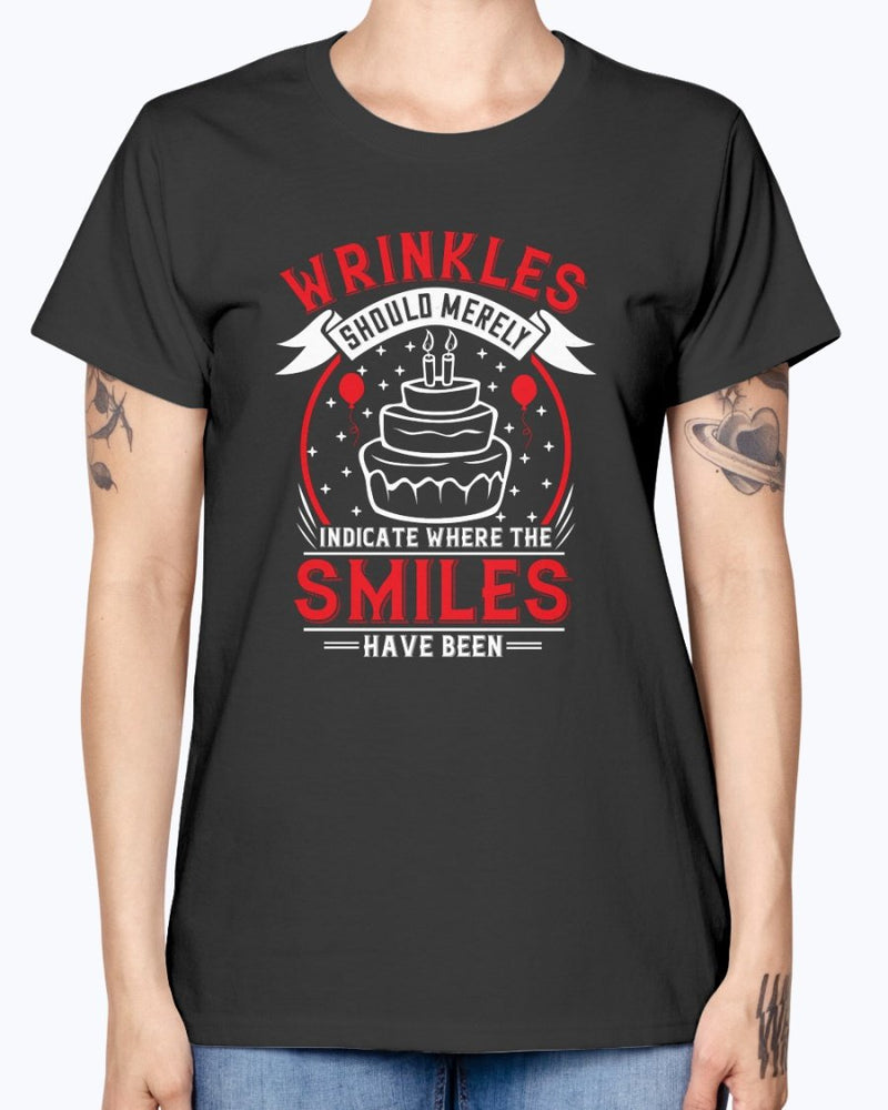 Wrinkles should merely indicate where the smiles have been- Birthday -Missy T-Shirt