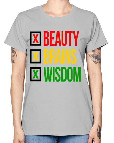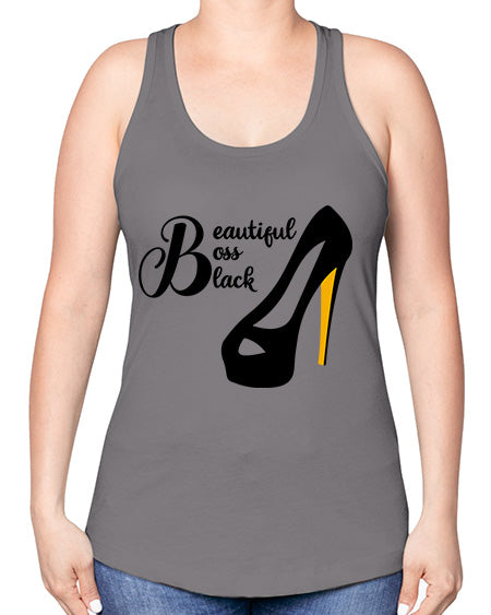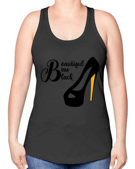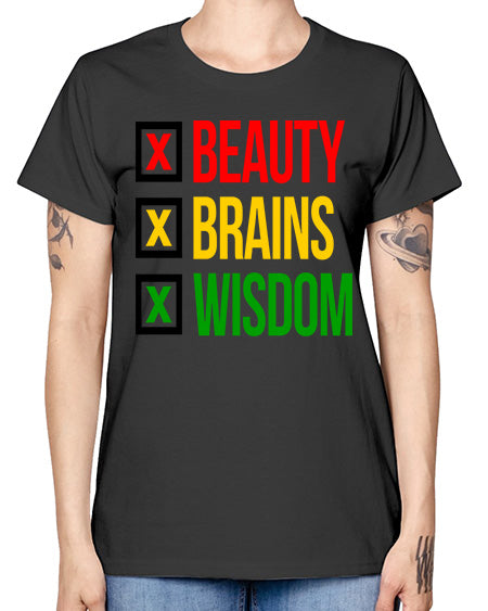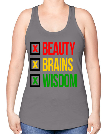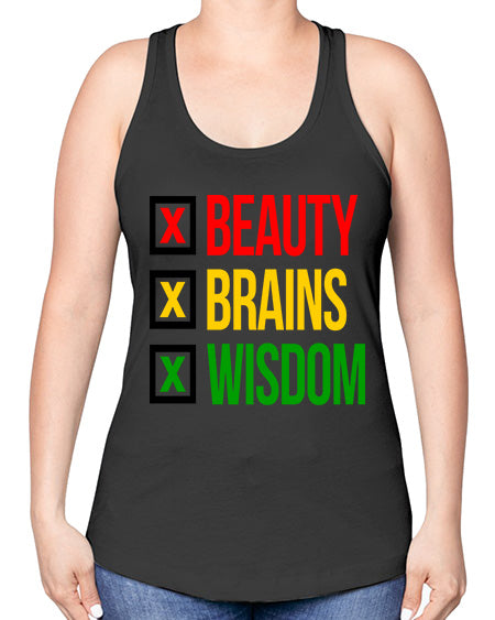 beauty brains wisdom 262# - black words and phrases -Racerback Tank