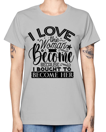 I love the woman ive become because i bought to become her Style 32# - black girls or women- Ladies T-Shirt
