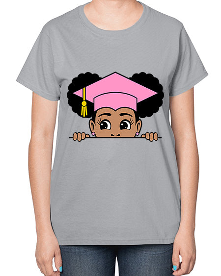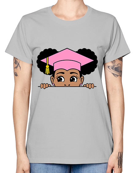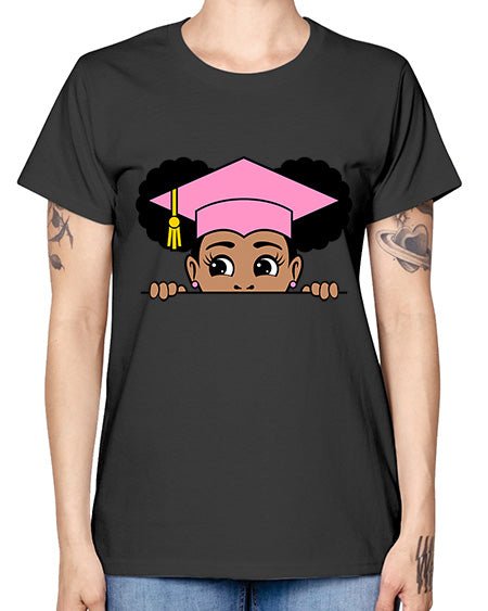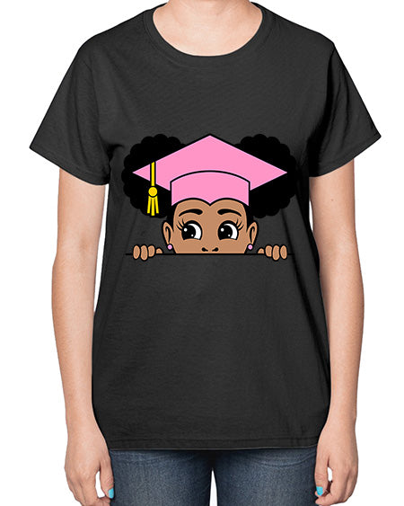 peekaboo afro puffs grad girl 23# - black girls or women- Ladies T-Shirt