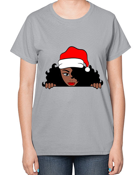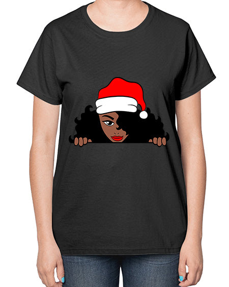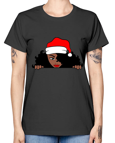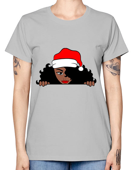 peekaboo santa girl 22# - black girls or women- Ladies T-Shirt