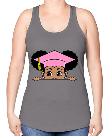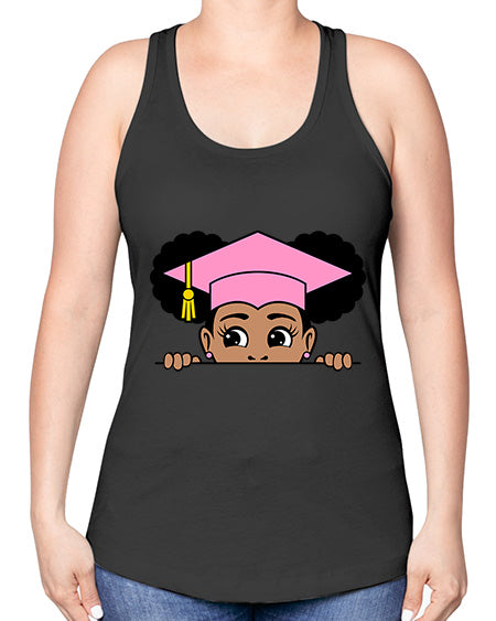 peekaboo afro puffs grad girl 23# - black girls or women -Racerback Tank