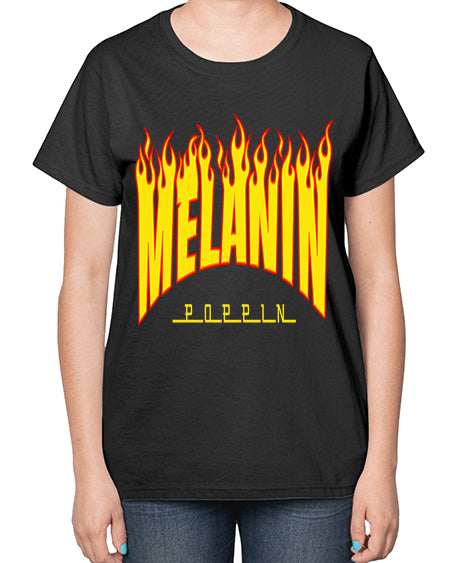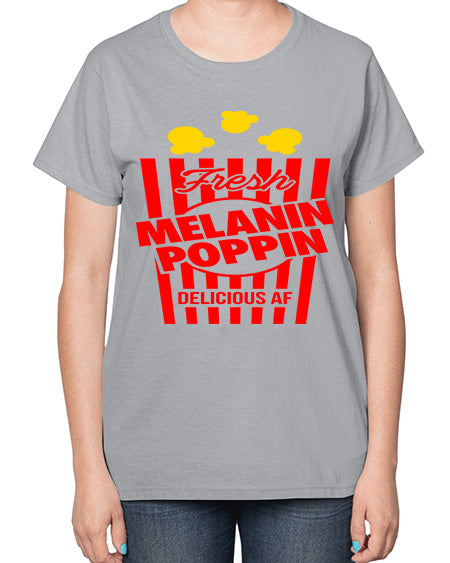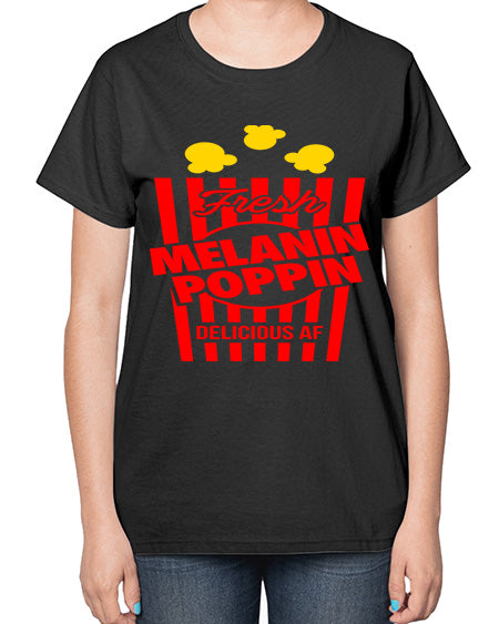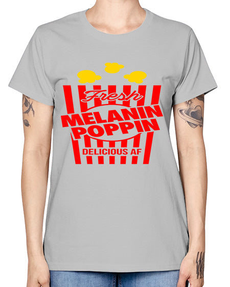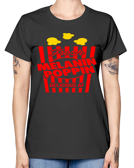 melanin poppin popcorn 86# - black words and phrases- Ladies T-Shirt