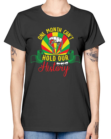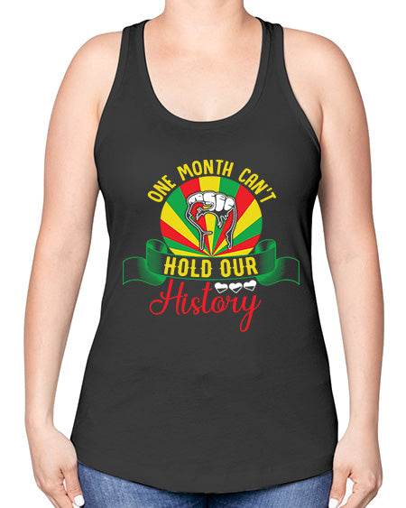 one month cant hold our history 27# - black words and phrases -Racerback Tank