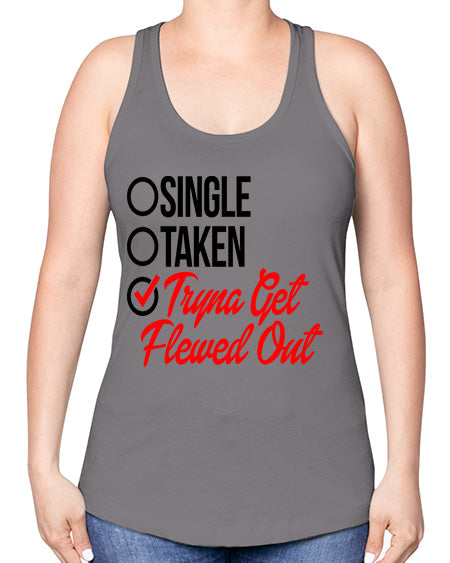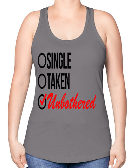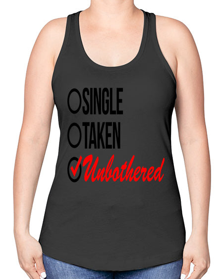 single taken unbothered 35# - black words and phrases -Racerback Tank
