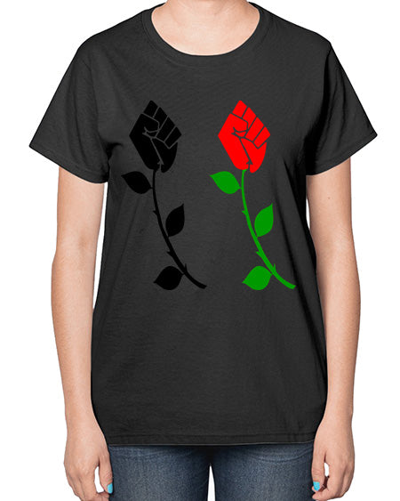 black power fist rose 197# - black words and phrases- Ladies T-Shirt