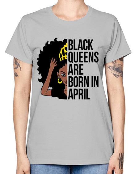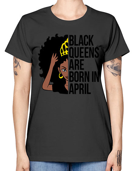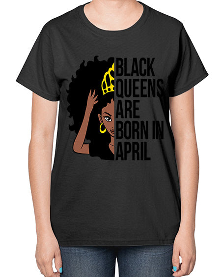 black queens are born in april 218# - black words and phrases- Ladies T-Shirt