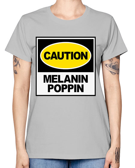 caution melanin poppin 188# - black words and phrases- Ladies T-Shirt