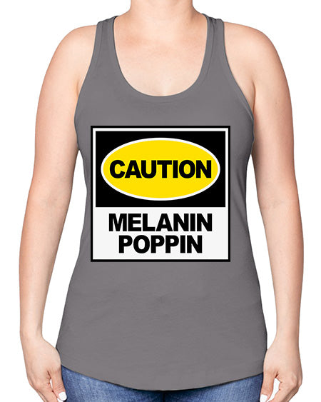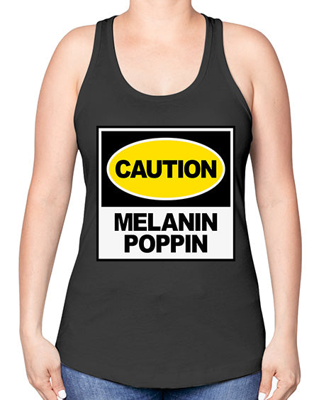 caution melanin poppin 188# - black words and phrases -Racerback Tank