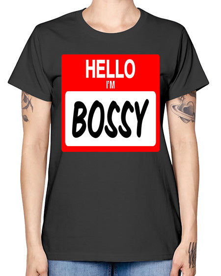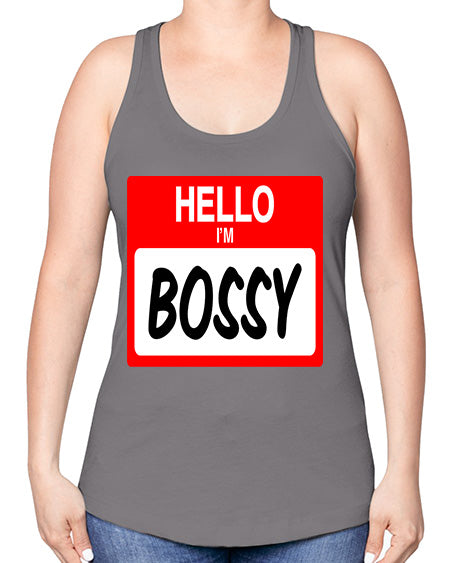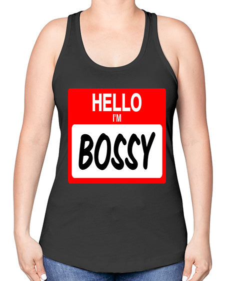 hello im bossy 132# - black words and phrases -Racerback Tank