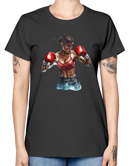 boxing water color art 170# - boxing- Ladies T-Shirt