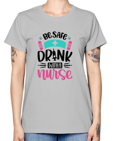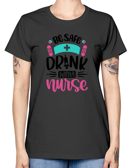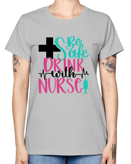 Be Safe Drink With A Nurse Style Style 600# - nurse- Ladies T-Shirt
