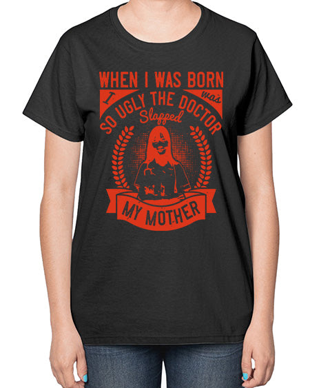 When I was born I was so ugly the doctor slapped my mother Style 472# - medical- Ladies T-Shirt