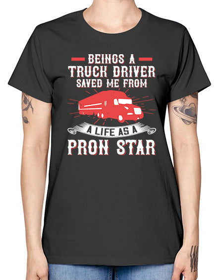 beings a truck driver saved me from a life as a pron star Style 77# - truck driver- Ladies T-Shirt