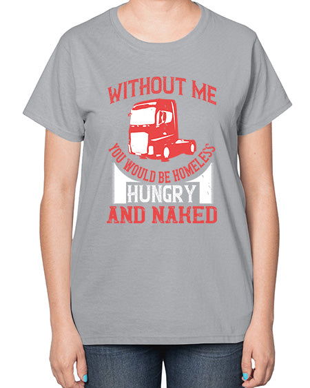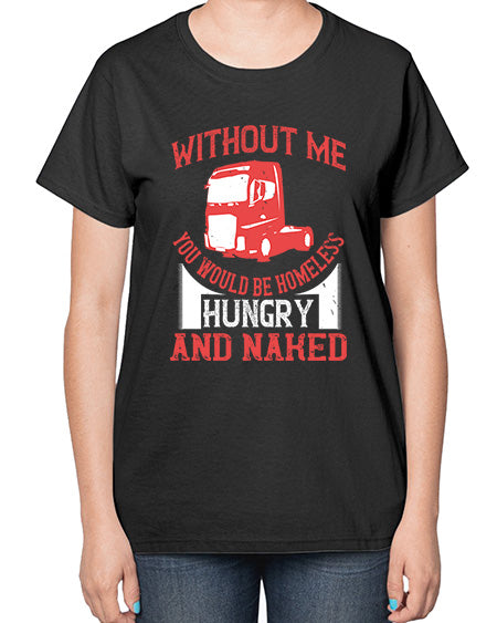 without me you would be homeless hungry and naked Style 476# - truck driver- Ladies T-Shirt