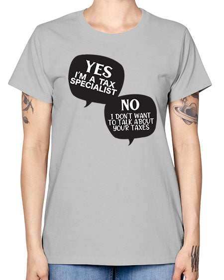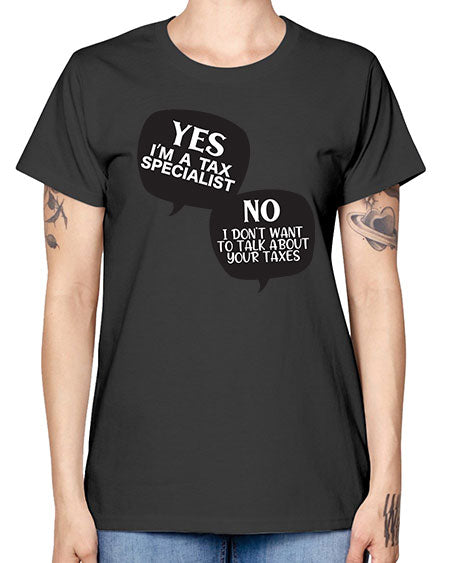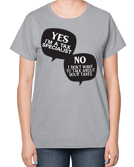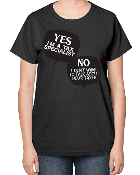 yes im a tax specialist no i dont want to talk about your taxes 1674# - accountant- Ladies T-Shirt