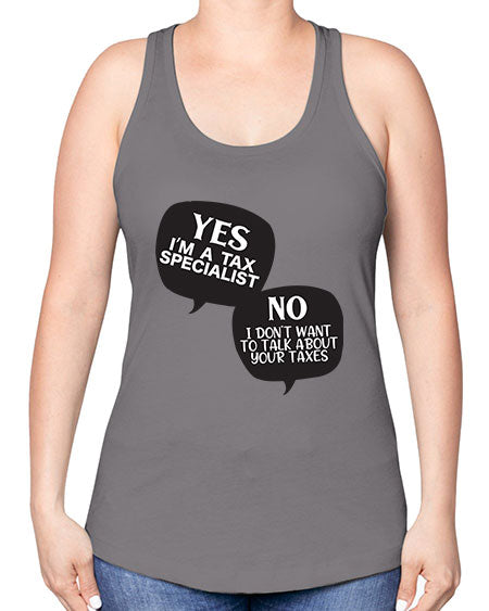 yes im a tax specialist no i dont want to talk about your taxes 1674# - accountant -Racerback Tank