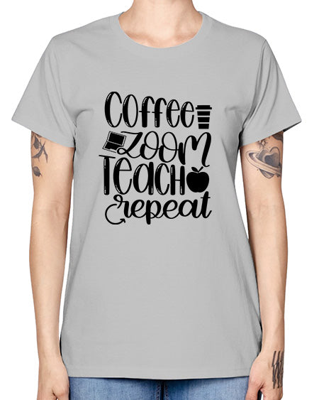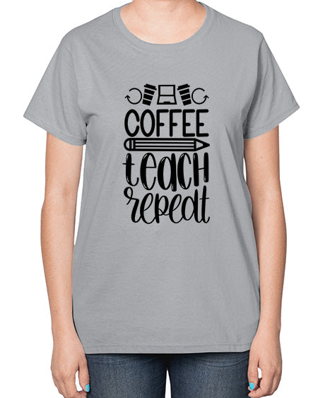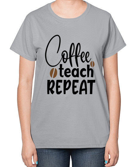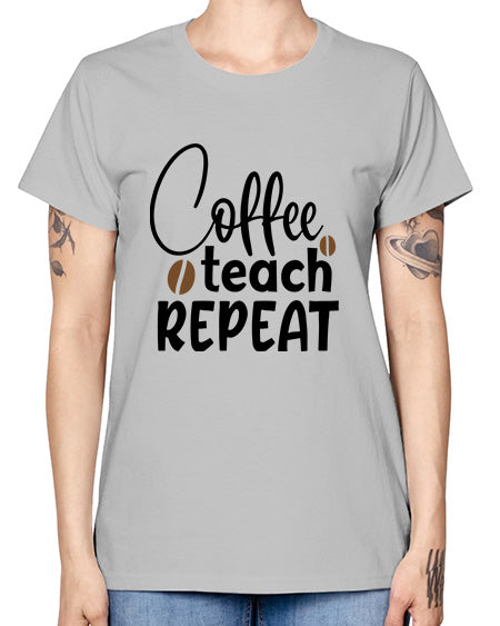 coffee teach repeat Style 106# - teacher- Ladies T-Shirt