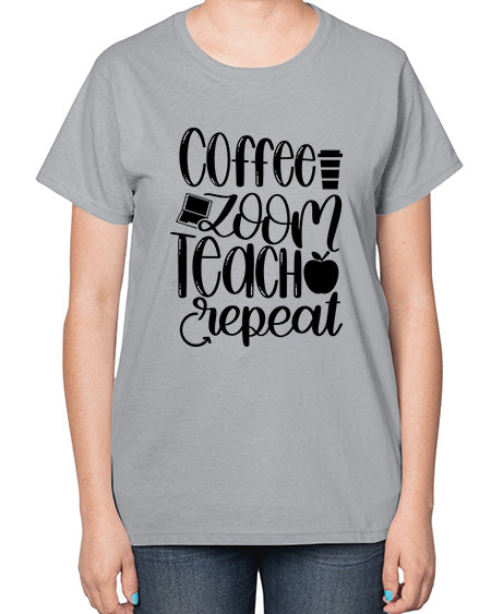 Coffee Zoom Teach Repeat Style 674# - teacher- Ladies T-Shirt