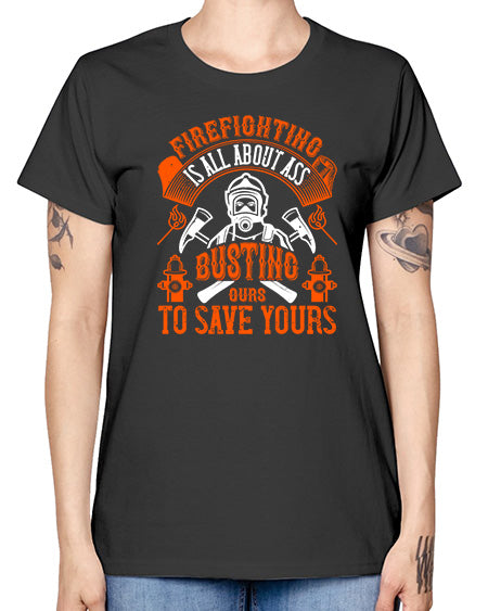 Firefighter is all about ass busting to save yours Style 786# - fire fighter- Ladies T-Shirt
