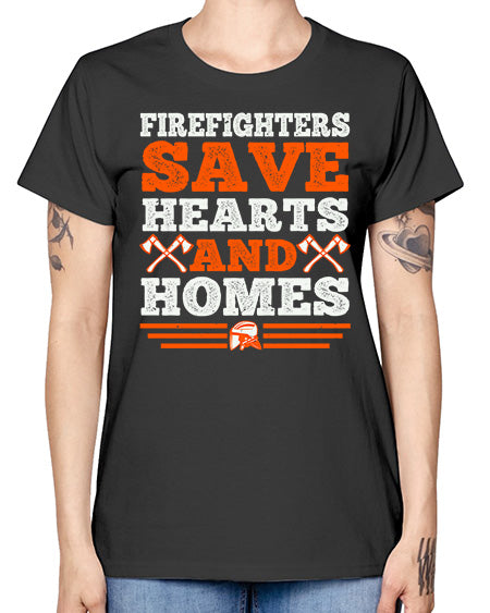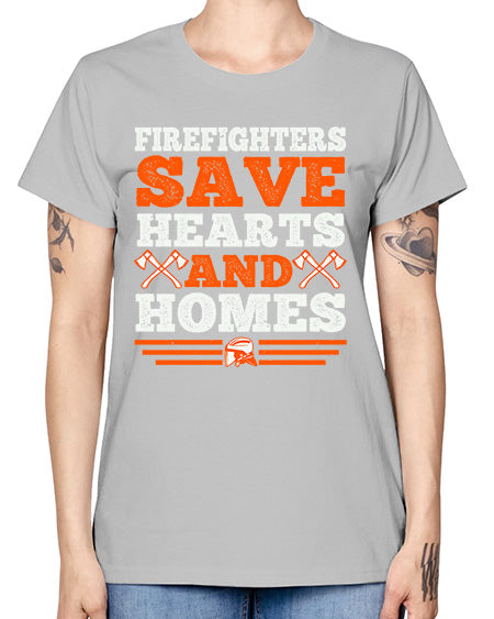 Firefighters save hearts and homes Style 793# - fire fighter- Ladies T-Shirt