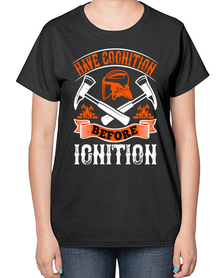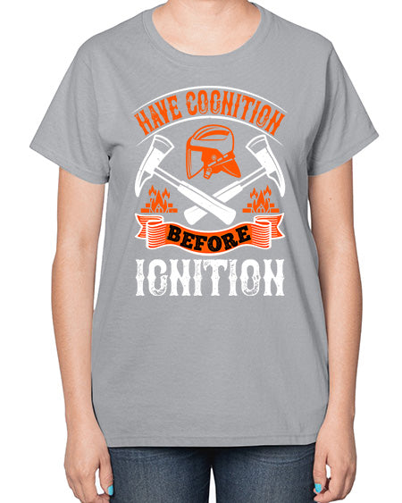 Have cognition before ignition Style 829# - fire fighter- Ladies T-Shirt