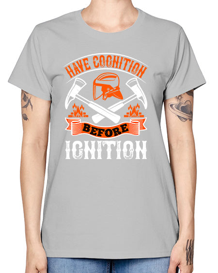 Have cognition before ignition Style 829# - fire fighter - Missy T-Shirt