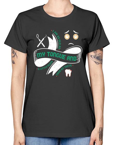 I am as old as my tongue and Style 185# - dentist- Ladies T-Shirt