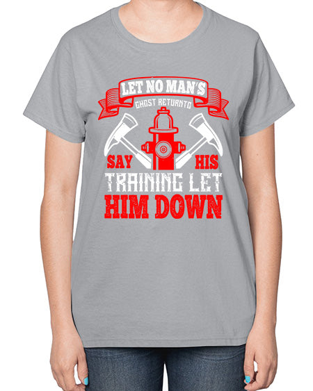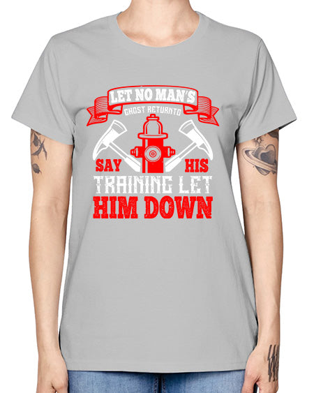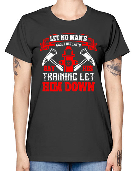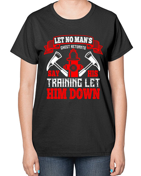 Let no mans ghost return to say his training let him down Style 1046# - fire fighter- Ladies T-Shirt