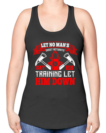 Let no mans ghost return to say his training let him down Style 1046# - fire fighter -Racerback Tank