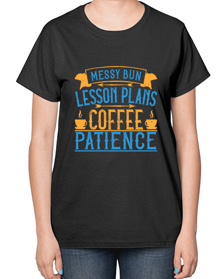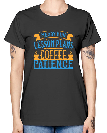 Messy bun lesson plans coffee patience Style 1098# - teacher- Ladies T-Shirt