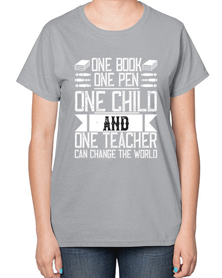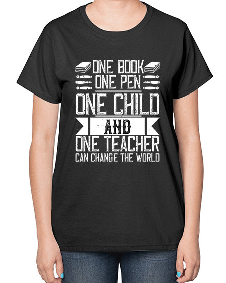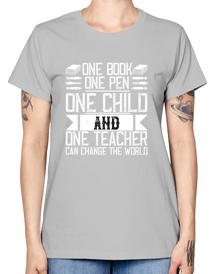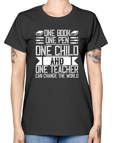 One book one pen one child and one teacher can change the world Style 1288# - teacher- Ladies T-Shirt