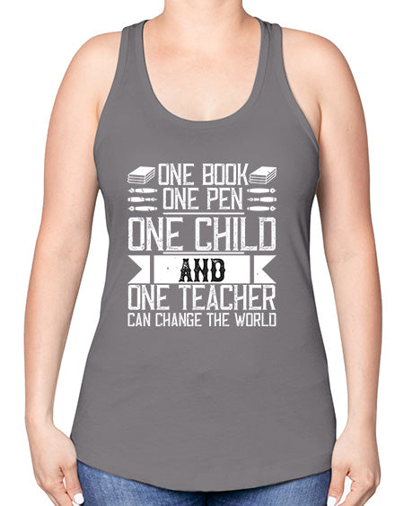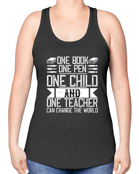 One book one pen one child and one teacher can change the world Style 1288# - teacher -Racerback Tank
