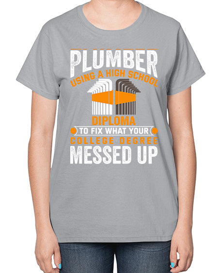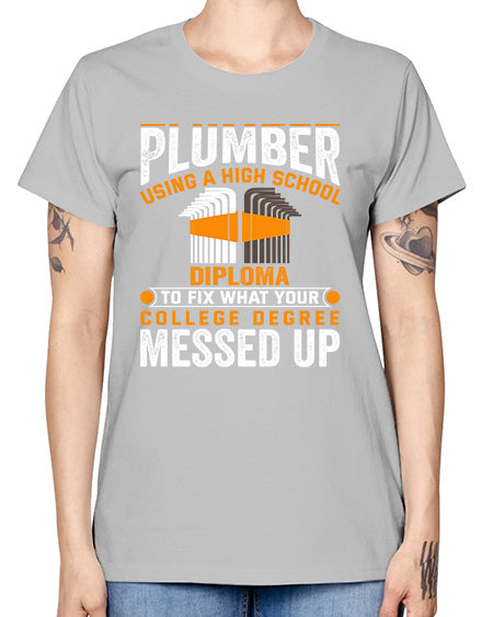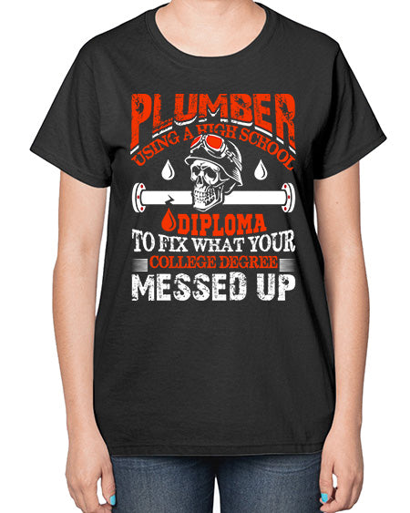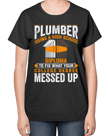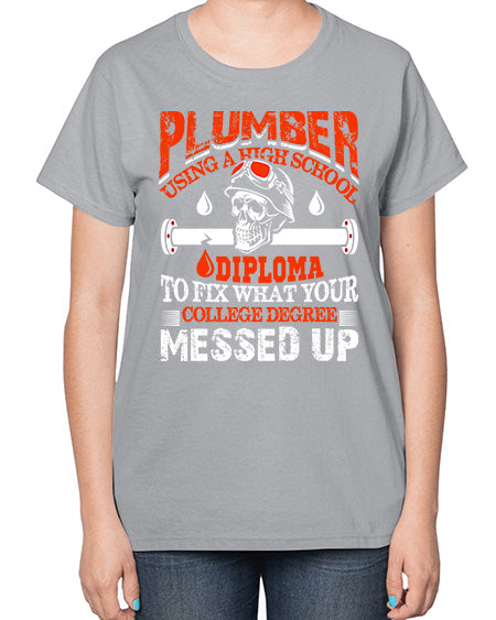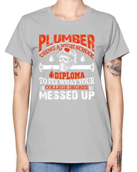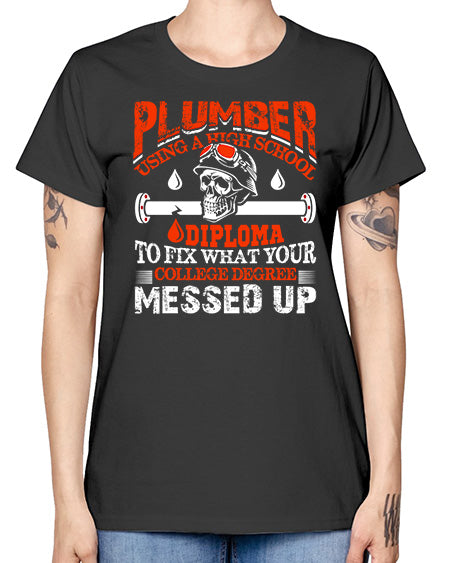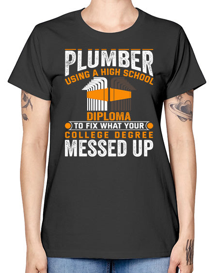 Plumber using a high school diploma to fix what your college degree messed up1324# - plumber- Ladies T-Shirt