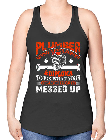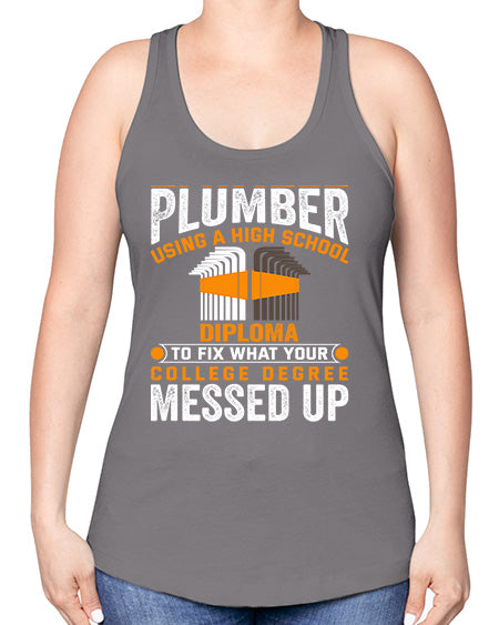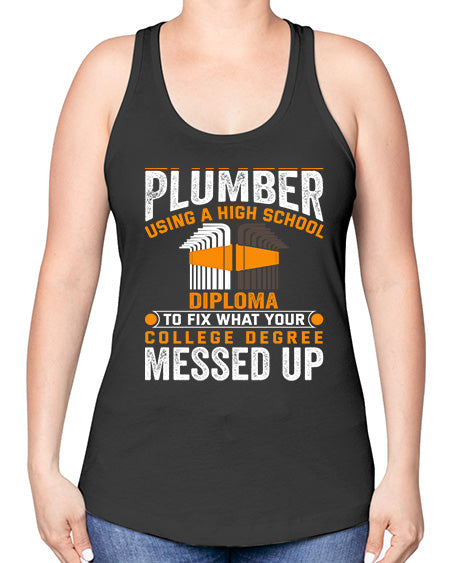 Plumber using a high school diploma to fix what your college degree messed up1324# - plumber -Racerback Tank