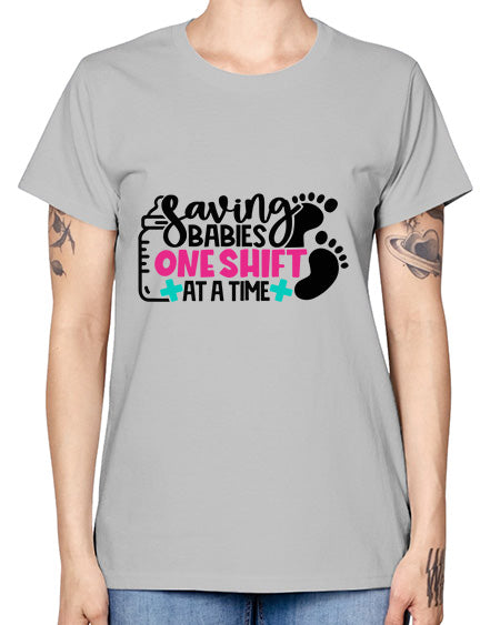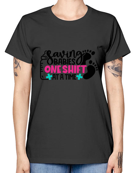 Saving Babies One Shift At A Time Style Style 1371# - nurse- Ladies T-Shirt