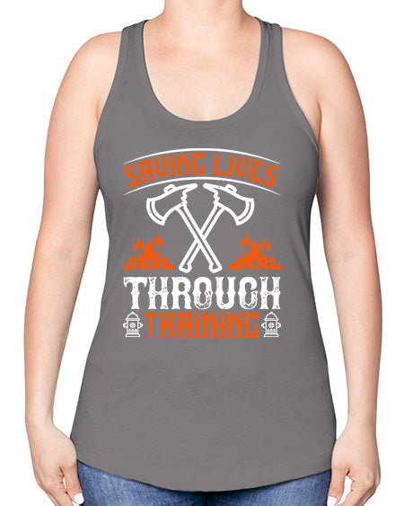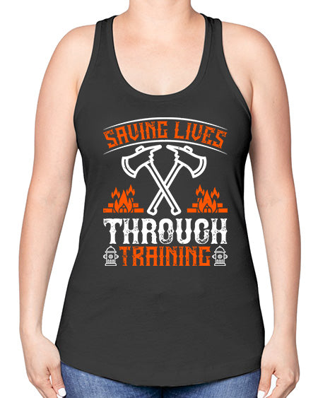 Saving lives through training Style 1372# - fire fighter -Racerback Tank