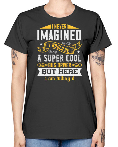 i never imagined i would be a super cool bus driver but here i am killing it Style 914# - Bus Driver- Ladies T-Shirt