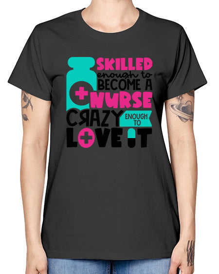 Skilled Enough To Become A Nurse Crazy Enough To Love It Style Style 1392# - nurse - Missy T-Shirt