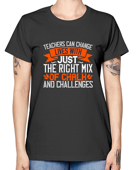 Teachers can change lives with just the right mix of chalk and challenges Style 1470# - teacher- Ladies T-Shirt