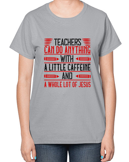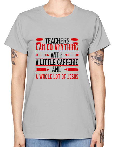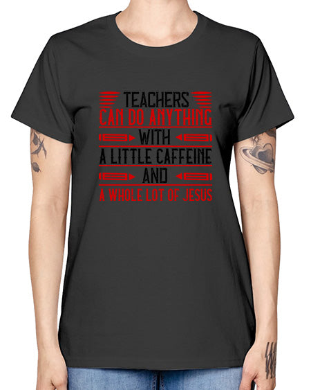 Teachers Can Do Anything With A Little Caffeine And A Whole Lot Of Jesus Style 1472# - teacher- Ladies T-Shirt
